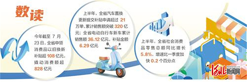 通过优化配套服务,营造良好市场环境,河北省各地持续做好以旧换新工作全流程跟踪问效,换出了消费新活力,换出了增长新动能。今年截至7月23日,全省申领消费品以旧换新补贴超108亿元,撬动消费额超828亿元。